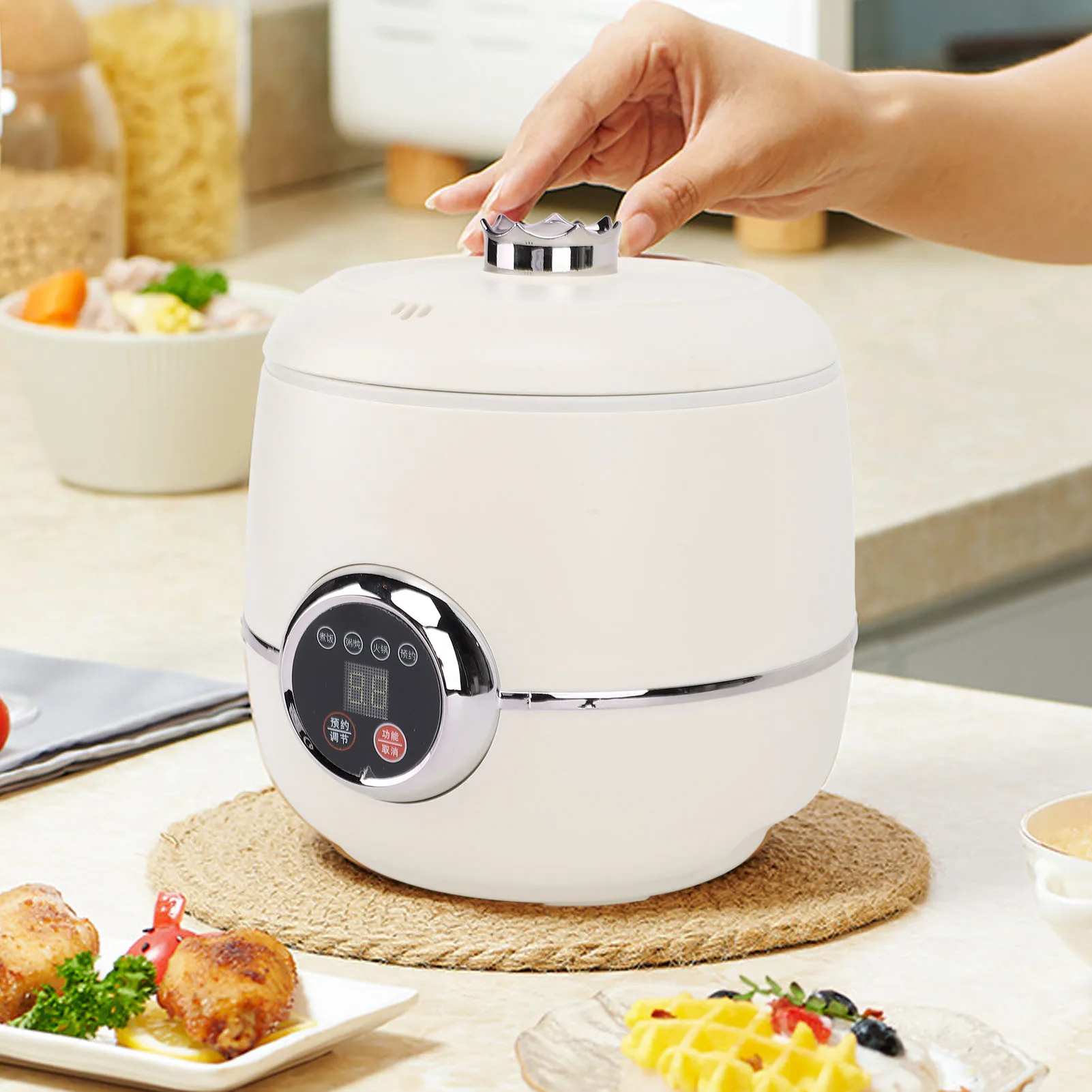 1、Multifunctional: This digital rice cooker features a multifunctional design that allows you to prepare a variety of dishes, including rice, porridge, soup, hot pot, and steamed meals. Its innovative circular heating base and 3D heating technology ensure even cooking, enhancing flavors and aroma to deliver perfectly cooked meals every time.